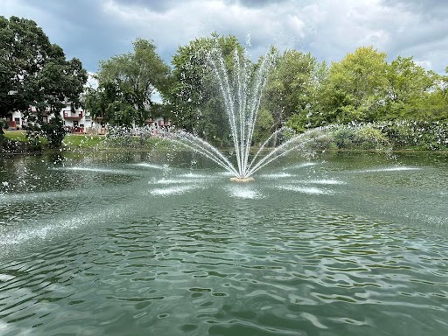 The stocked pond and mature trees create a serene outdoor setting with rentable garages to store all your outdoor toys!